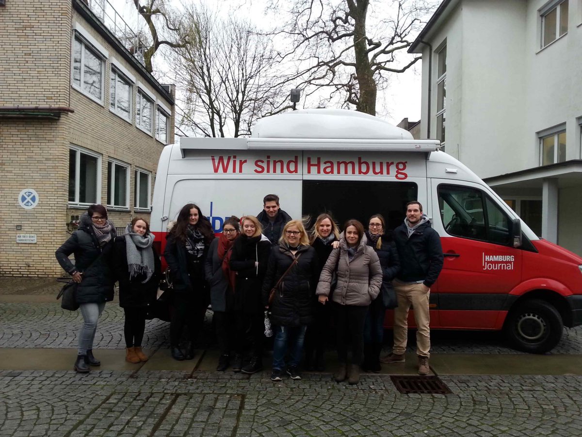 Auf der darauffolgenden Tagesordnung standen unter anderem ein gemeinsamer Abend beim Poetry Slam im Ernst-Deutsch-Theater, eine Führung durch den Norddeutschen Rundfunk N-JOY und eine Erkundungsreise beim Dialog im Dunkeln. Trotz völliger Dunkelheit wurde hier mit allen Sinnen und vor allem mit großen Vertrauen untereinander eine förmlich bunte Welt neu entdeckt.