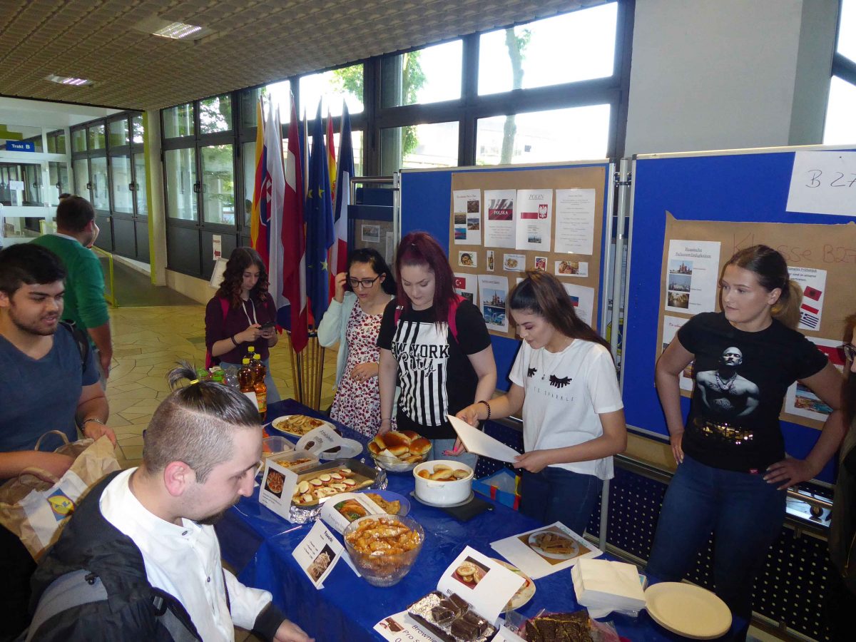 Schülerinnen und Schüler organisieren ein internationales Frühstück mit Spezialitäten aus vielen Ländern anlässlich des „Europatages“ (9. Mai) und der Europawoche im Kreis Gütersloh. Im Foyer gab es wieder viele Köstlichkeiten, mit denen Schülern und Lehrern der Europagedanke und „noch viel mehr“ kulinarisch nähergebracht wurden. Wie schon in den letzten Jahren eine gelungene Aktion!
