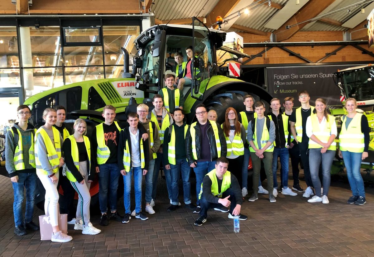 Da Landwirtschaftsmaschinen nicht mehr größer und breiter werden dürfen, setzt Claas immer mehr auf moderne Technik und schlauere Maschinen. Dadurch kann z. B. der neue „Jaguar“ mit der gleichen Größe wie der alte „Jaguar“ das Doppelte an Ernte pro Stunde einfahren. Außerdem wurde uns die Lehrwerkstadt, in welcher die Auszubildenden technischen Berufe erlernen, gezeigt.