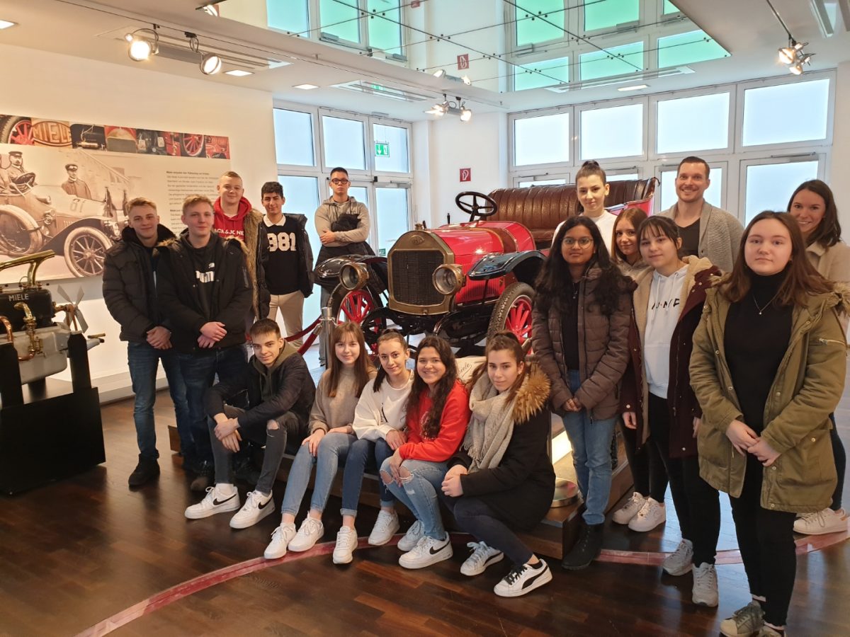 Die Betriebserkundung wurde durch eine Führung im Museum ergänzt. Hier wurde der geschichtliche Verlauf der Miele Produktpalette veranschaulicht. Neben Fahrrädern, der Entwicklung von Waschmaschinen, alten Werbespots und Staubsaugern konnte sogar ein altes Auto von Miele bewundert werden. Überrascht von der umfassenden Produktpalette, empfanden wir den Tag insgesamt als sehr gelungen. Unser Klassenlehrer Herr Rohner bedankt sich bei allen Beteiligten für die Ermöglichung der Betriebserkundung.