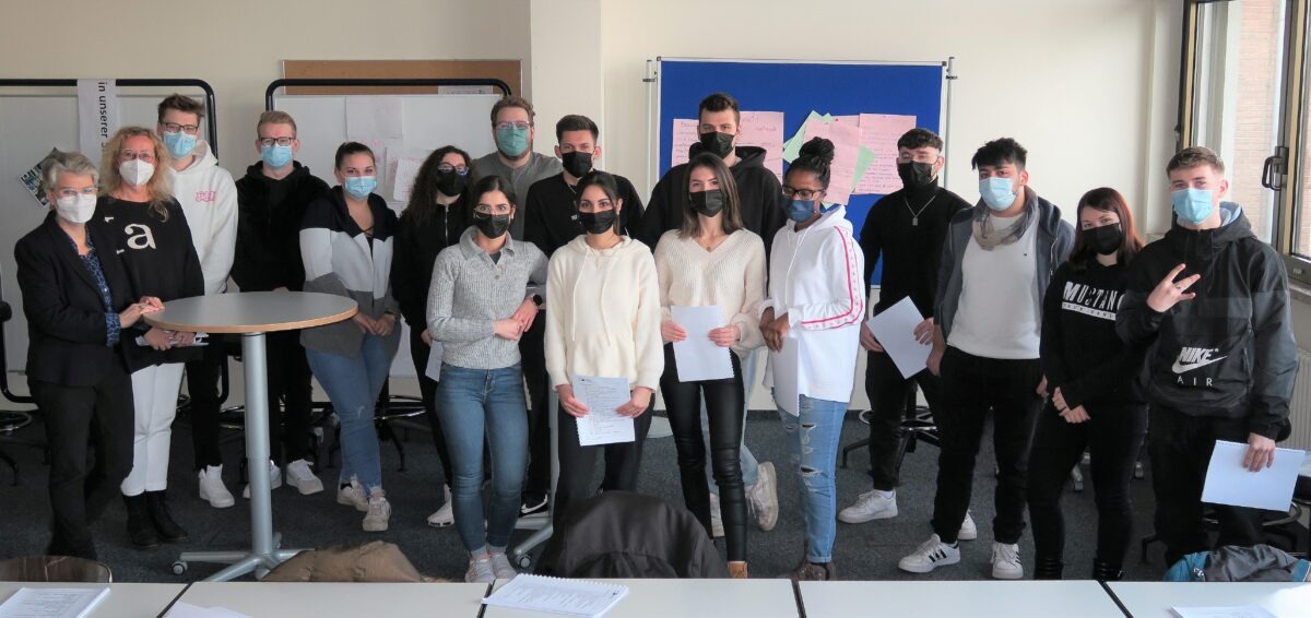 Im Beruf gelten in vielen Bereichen andere Verhaltensregeln als im Privatleben. Der Umgang mit Kund*innen, Vorgesetzen und Kolleg*innen gestaltet sich anders als mit Familie und Freunden. Jungen Menschen soll der Start in das Berufsleben erleichtert werden. Dazu findet das Seminar „Benimm ist in“ der IHK-Akademie im Bildungsgang Einzelhandel statt. Nach der Begrüßung durch Frau Antar und der Moderation von Frau Rosemeier bekommen die Unterstufenklassen EH11 und EH12 viele praktische Verhaltenstipps von der Auswahl der Kleidung über das Grüßen und Vorstellen bis hin zum Umgang mit Vorgesetzten, Kunden und Kolleg*innen.