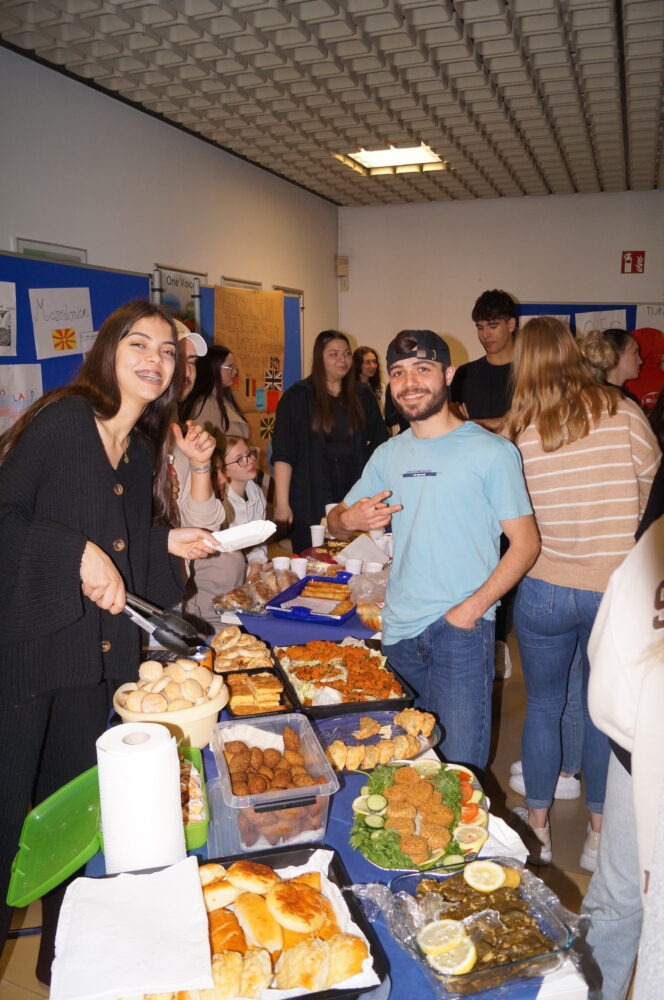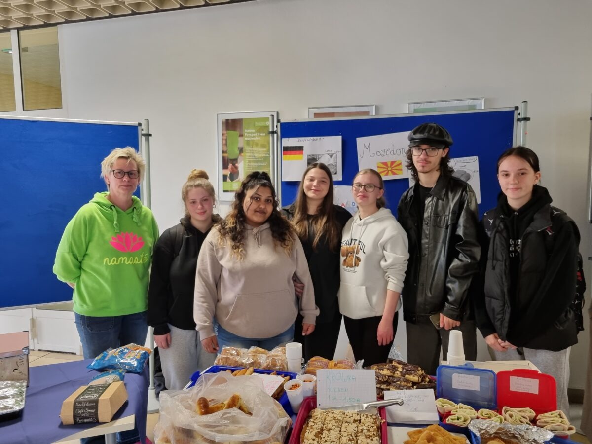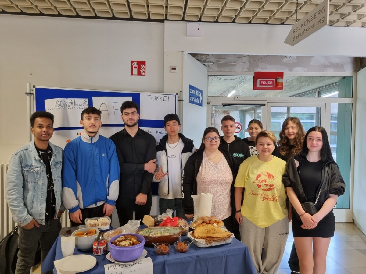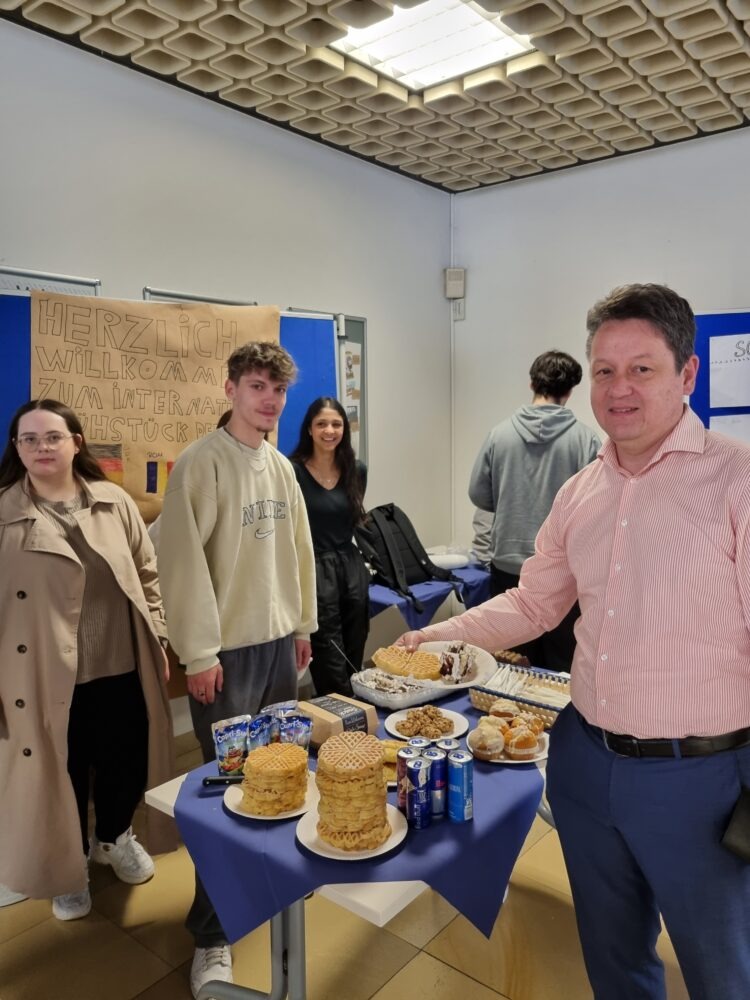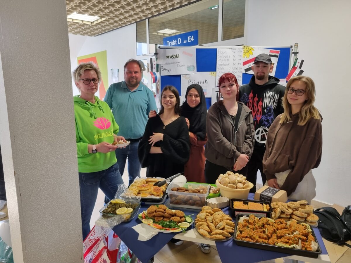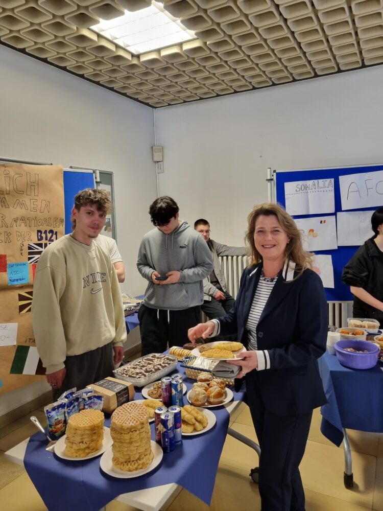 Heute fand am Ems-Berufskolleg das Internationale Frühstück statt. Passend zum Europatag und der Europawoche des Kreises Gütersloh haben sich die Klassen IK21, B121, B221, B222 ins Zeug gelegt und leckere internationale Köstlichkeiten hergestellt. Sowohl für den süßen als auch für den herzhaften Gaumen war alles dabei. Wer hier gegessen hat, hat die Welt erkundet! Von ukrainischer, rumänischer, bulgarischer, türkischer bis hin zur arabischen Küche und weiteren traditionellen Länderspezialitäten war alles vertreten und stieß auf große Begeisterung bei den Schüler*innen und im Kollegium.