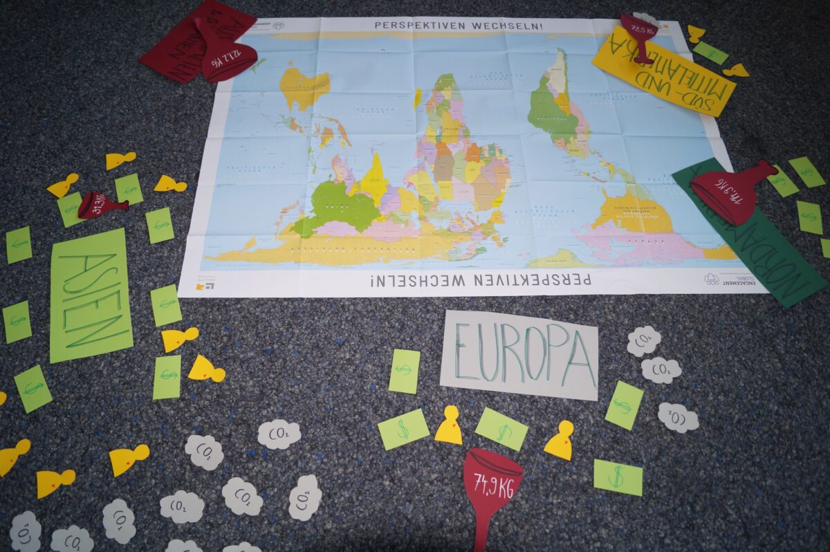 Die Moderatorinnen Theresa Segna und Luan Kuhlen von der Organisation TIETUS (Tiere, Ethik und Umweltschutz) haben mit der Klasse HH22 (im Rahmen des Faches Nachhaltiges Wirtschaften) das Thema industrielle Tierhaltung und die globalen Folgen interaktiv behandelt.