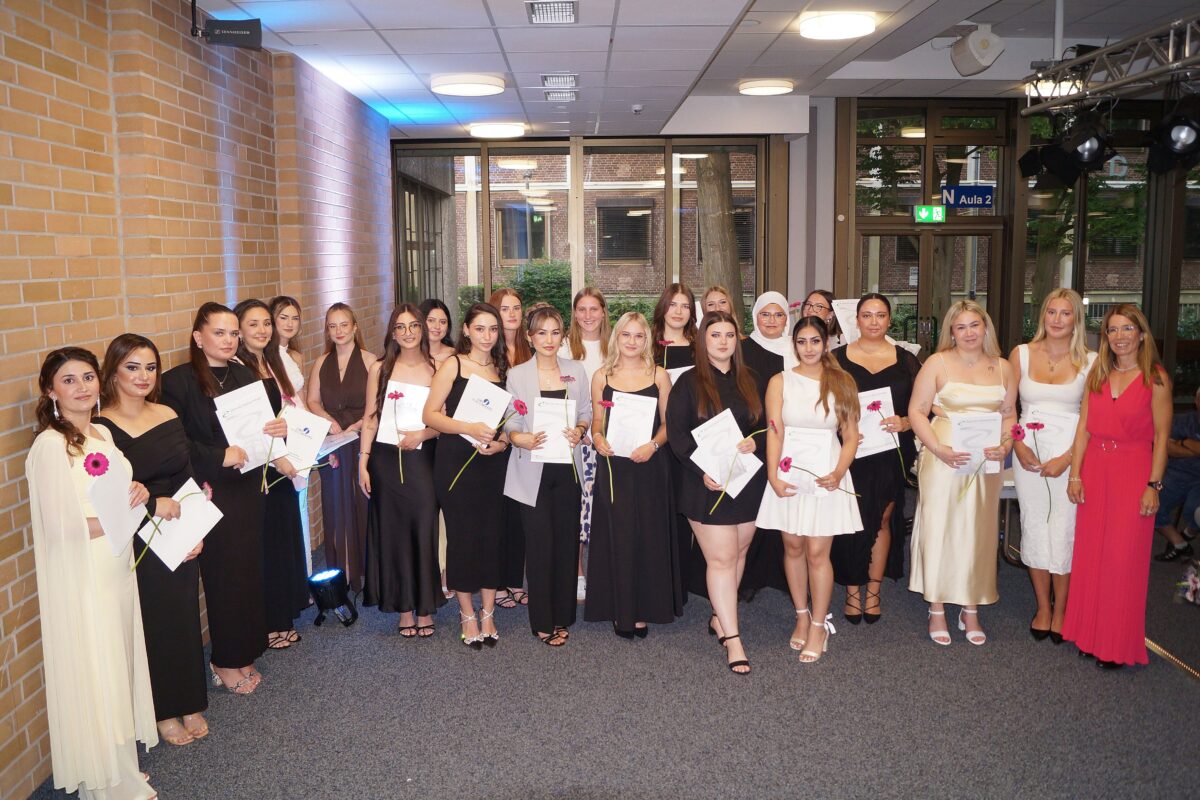 Mit der Überreichung der Berufsschulzeugnisse sowie der Fachangestelltenbriefe endete für 34 Zahnmedizinische Fachangestellte die dreijährige Ausbildungszeit. Um diesen besonderen Moment gebührend zu feiern, waren die Absolventinnen mit ihren Lehrkräften, Ausbildern sowie Familienangehörigen und Freunden zu einer Feierstunde am Ems-Berufskolleg zusammengekommen. Der stellvertretende Schulleiter Achim Wörmann gratulierte allen Fachangestellten ganz herzlich: „Sie sind jetzt Profis mit Herz, Hirn und Handschuhen, außerdem Managerin und Seelentrösterin im Wartezimmer.“ Die Bezirksstelle Gütersloh der Zahnärztekammer Westfalen-Lippe war durch ihren Vorsitzenden Stefan A. Roth vertreten: „Ohne die Fachangestellten und ohne das Team funktioniert die ärztliche Praxis nicht.