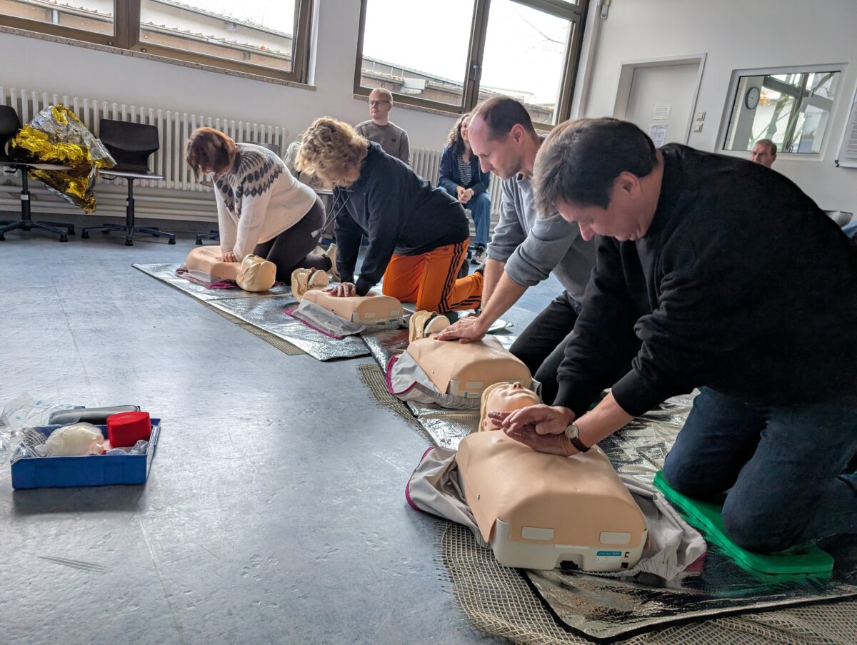Ein herzlicher Dank geht an Torgen Schmidt für die engagierte und praxisnahe Auffrischung unseres Erste-Hilfe-Wissens! Weitere Eindrücke vermitteln die folgenden Fotos.