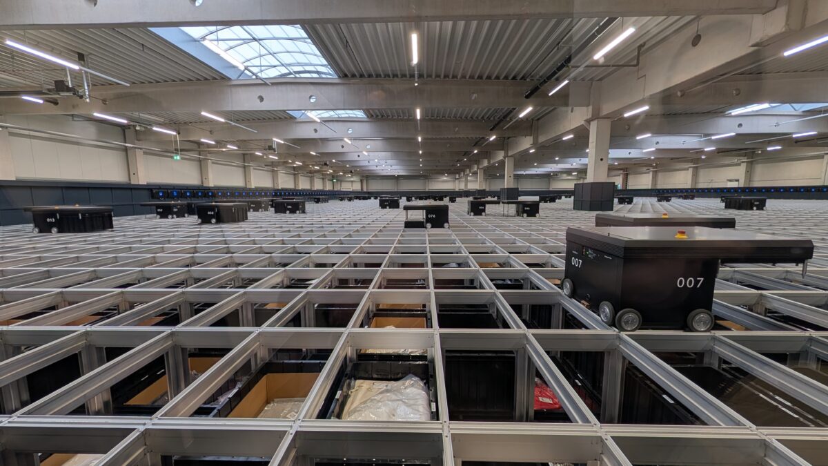 Im Anschluss folgte eine ausführliche Besichtigung des Lagers – vom Wareneingang bis zum Warenausgang. Bereits im Wareneingang beeindruckte ein Roboter, der LKWs automatisiert entlädt. Besonders faszinierend war das sogenannte Auto-Self-Storage-Lager: Rund 80 kleine Roboter übernehmen dort selbstständig das Einlagern und Kommissionieren der Ware. Beim letzten Schritt der Kommissionierung kommt das Pick-by-Light-System zum Einsatz. Lichtsignale zeigen den Mitarbeitenden exakt an, welche Artikel in welcher Menge entnommen werden müssen. Ergänzend dazu arbeiten die Mitarbeitenden im gesamten Lagerbereich mit Handscannern, die die Prozesse mit menschlicher Beteilugung deutlich vereinfachen.